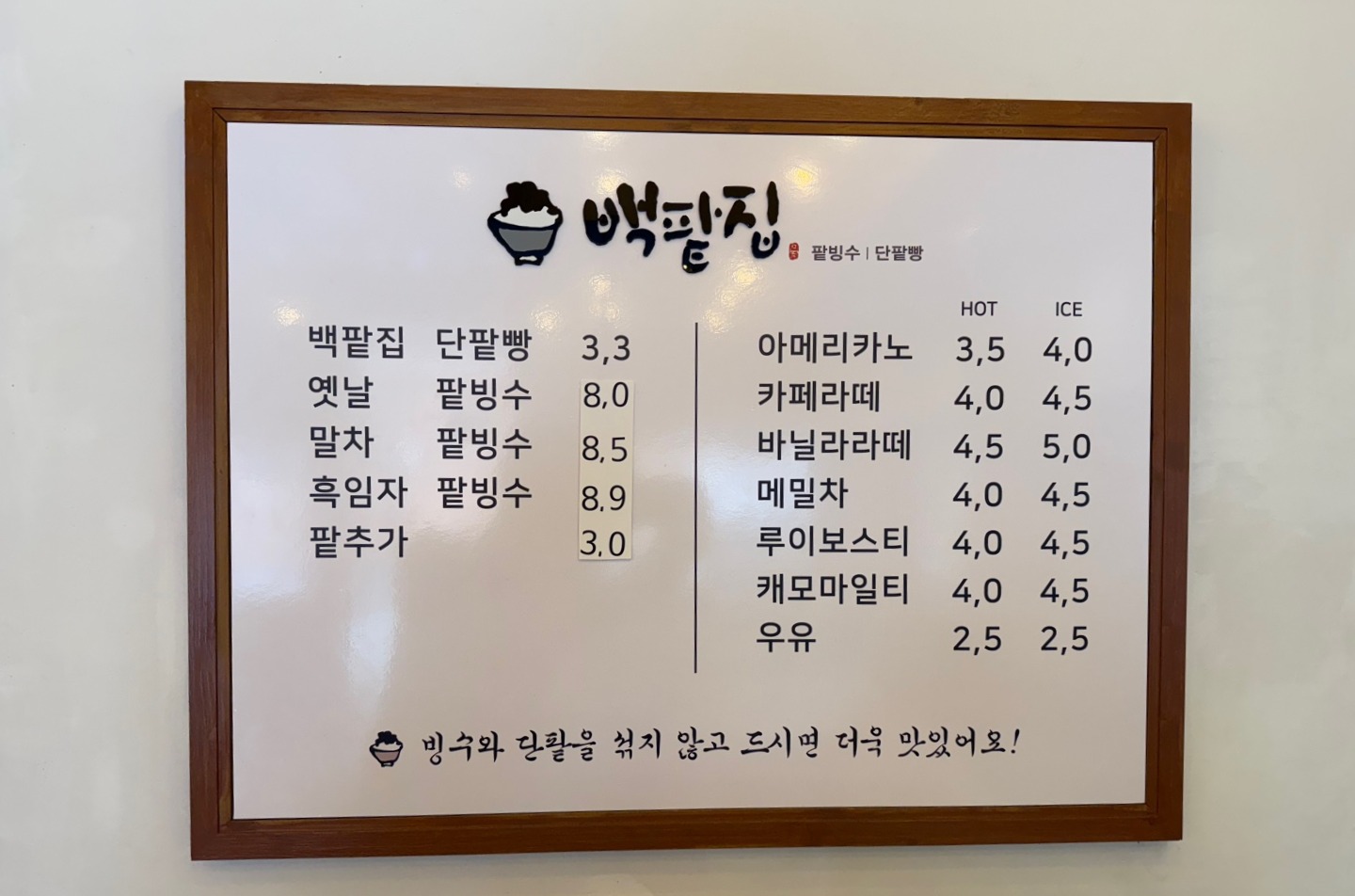 "이렇게 고소할 수 있구나"라며 한입 한입 먹던 그 모습을 보면서, 백팥집이 단순히 디저트를 파는 곳이 아니라 입맛의 취향을 바꾸는 경험을 제공하는 공간이라는 생각이 들었습니다.